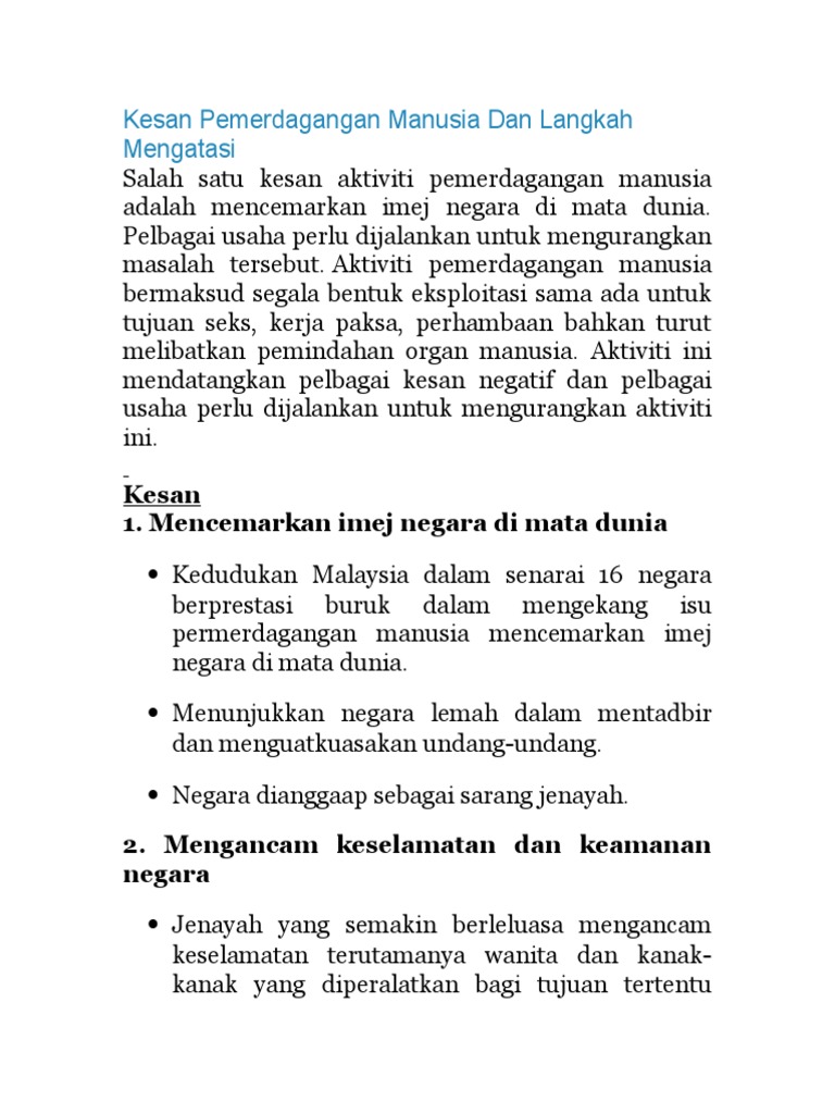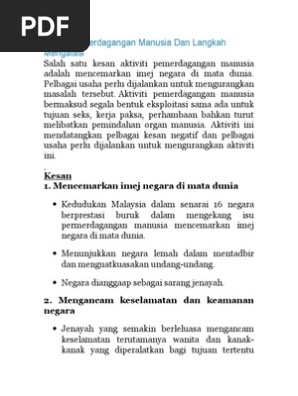 Kesan Pemerdagangan Manusia Dan Langkah Mengatasi Pdf