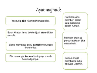Kata kerja Mengemas ruang tamu Bersenam membuat regangan Menyiram pokok bunga Memukul dram Mengulang kaji.